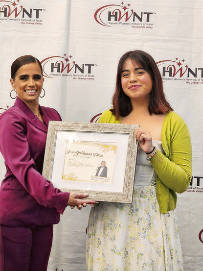 At the HWNT Scholarship Awards Ceremony, two outstanding young women were celebrated for their exceptional achievements. Diviana Runyon Vargas, a senior from PSJA Memorial Early College HS, was awarded the prestigious Aminta Estella Flores Scholarship, a newly created scholarship that recognizes academic excellence and supports young women in pursuing higher education in the medical field. Diviana's dedication and commitment to her education made her an ideal recipient of this esteemed scholarship.